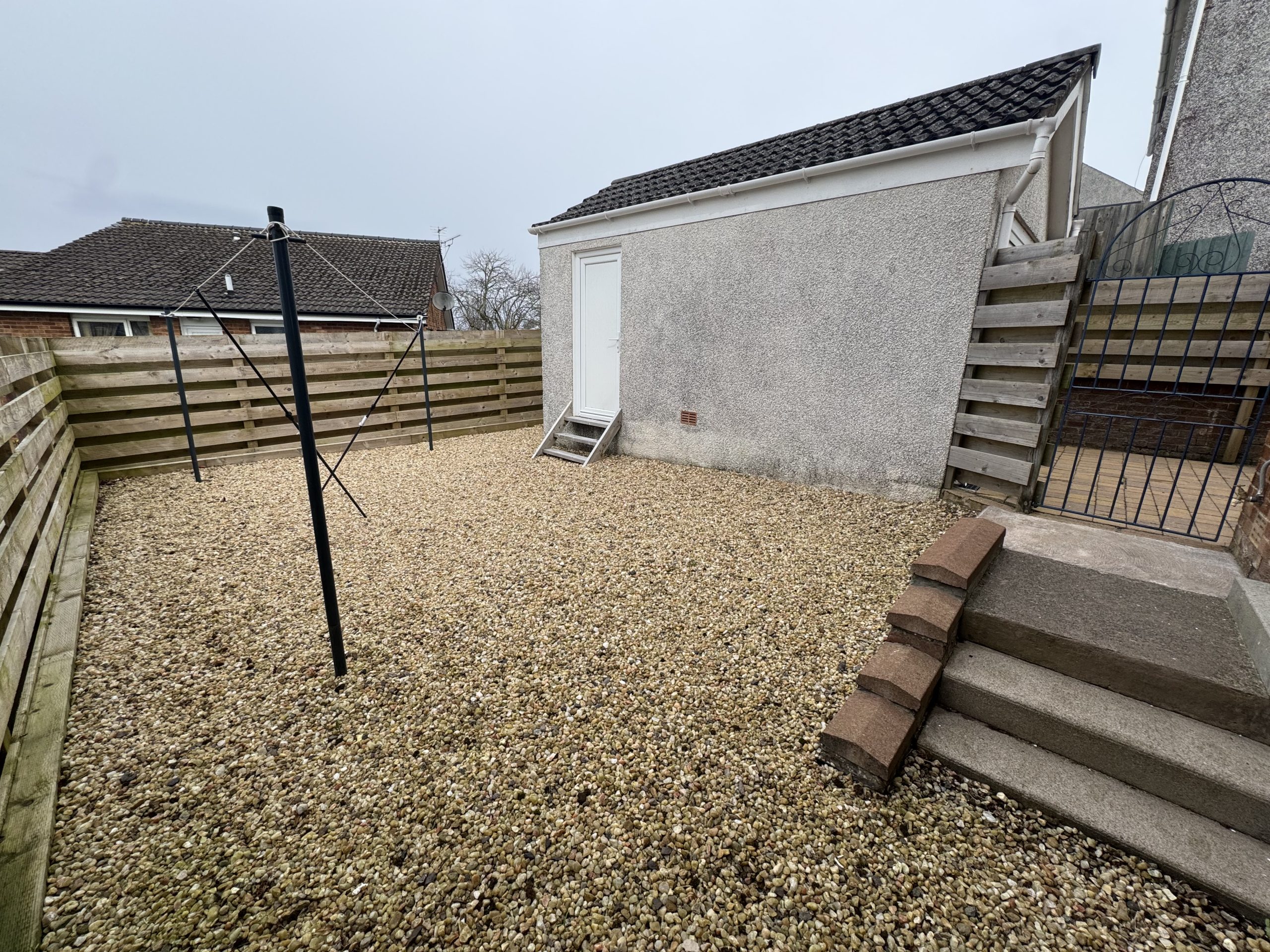 The accommodation comprises: front entrance porch with storage cupboard; good sized living room with views to the front of the property; kitchen with both wall and floor cupboards, integrated electric hob and oven, space and plumbing for washing machine and tumble dryer; two generous sized double bedrooms; shower room with walk-in corner shower cubicle, W.C. and washhand basin. The garden to the rear is low-maintenance and laid with decorative gravel. The garage to the side of the property is installed with electric power and lighting.