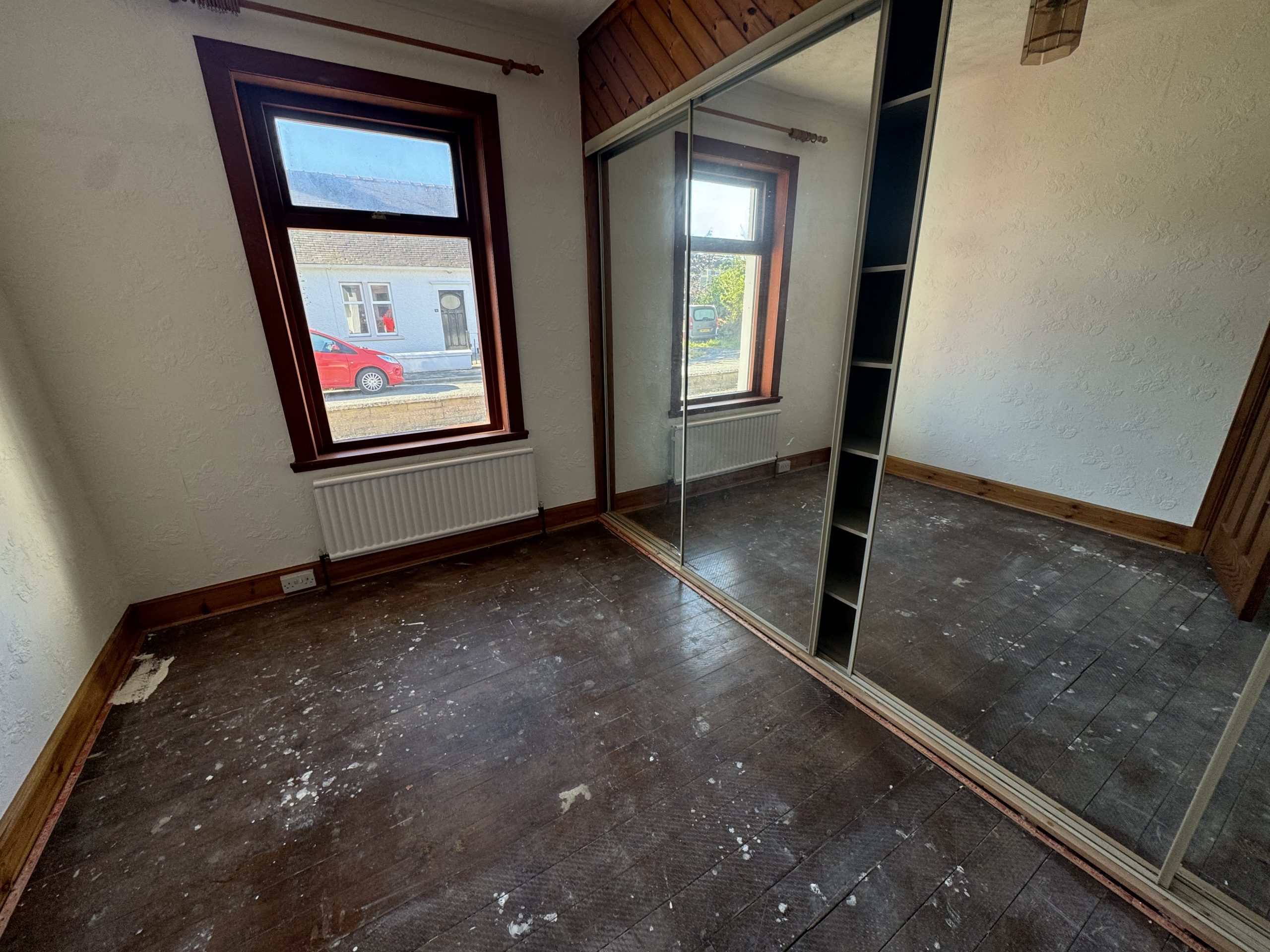 The accommodation comprises: good sized living room with gas fire and views to the rear of the property; kitchen with floor and wall cupboards, integrated gas hob and electric oven, space for under-counter fridge and freezer, space and plumbing for washing machine and tumble dryer; bathroom with W.C., washhand basin, bath and separate shower; bedroom 1 is a double room with views to the front of the property; bedroom 2 is a single room to the front of the property with built-in wardrobes with mirrored sliding doors. The gardens surrounding the property are paved and easy to maintain.